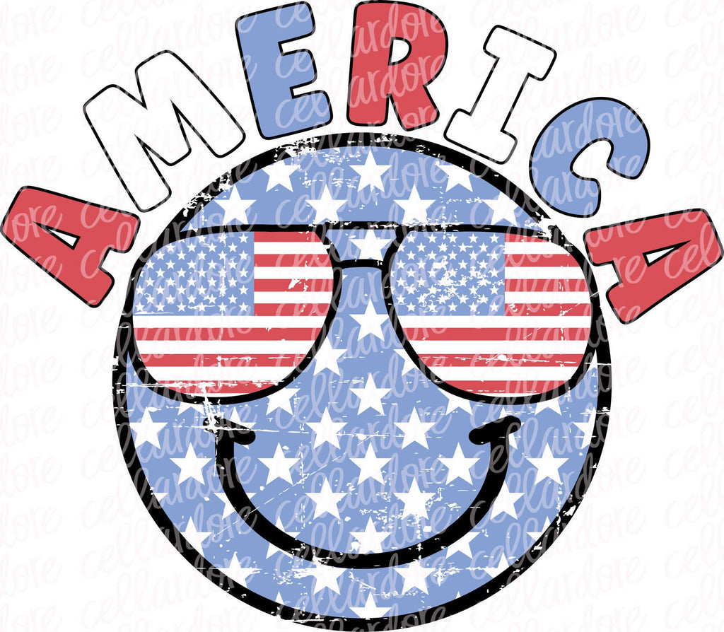America Patriotic Smiley with optional pocket design | DTF Ready to Press or Sublimation Transfer