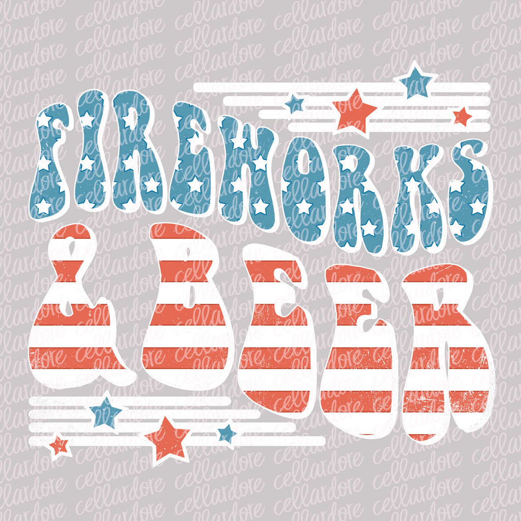 Fireworks and Beer | DTF Ready to Press or Sublimation Transfer