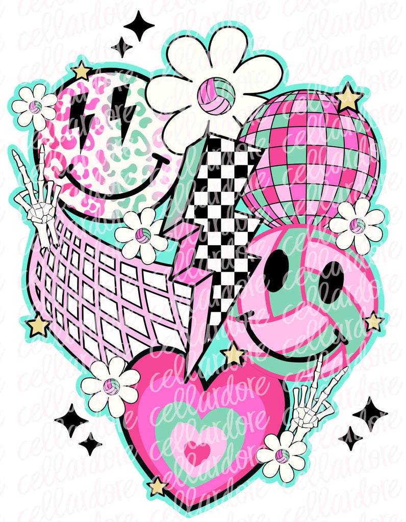 Retro Volleyball Collage - DTF Ready to Press or Sublimation Transfer