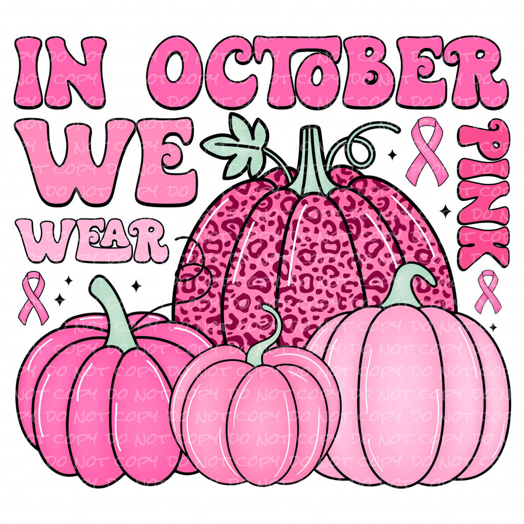In October We Wear Pink Pumpkins | DTF Ready to Press or Sublimation Transfer