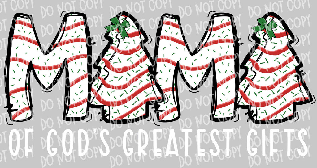 Mama of God's Greatest Gifts - Christmas Tree Cakes Version | DTF Ready to Press or Sublimation Transfer
