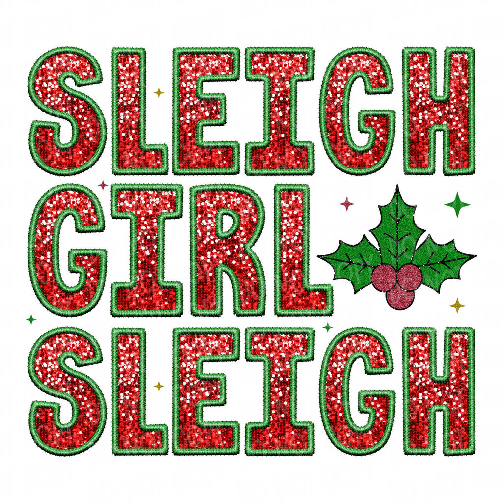 Sleigh Girl Sleigh Faux Glitter Embroidery | DTF Ready to Press or Sublimation Transfer