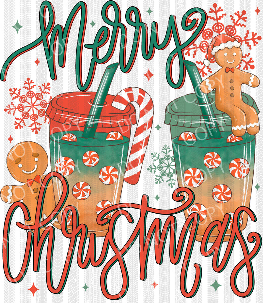 Merry Christmas Gingerbread Peppermint Drinks | DTF Ready to Press or Sublimation Transfer