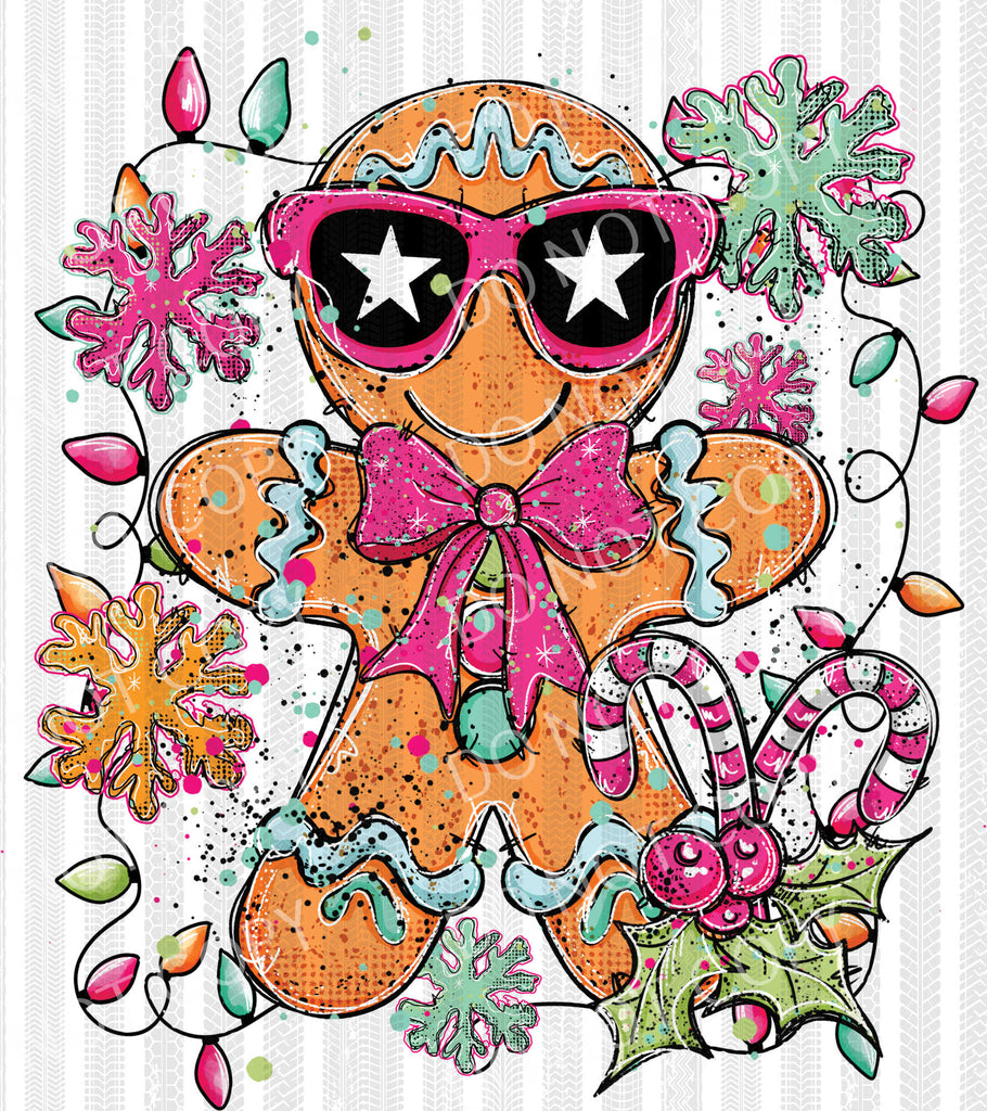 Gingerbread Doodle with optional sleeve design | DTF Ready to Press or Sublimation Transfer