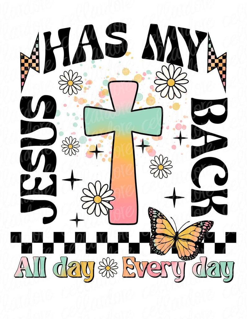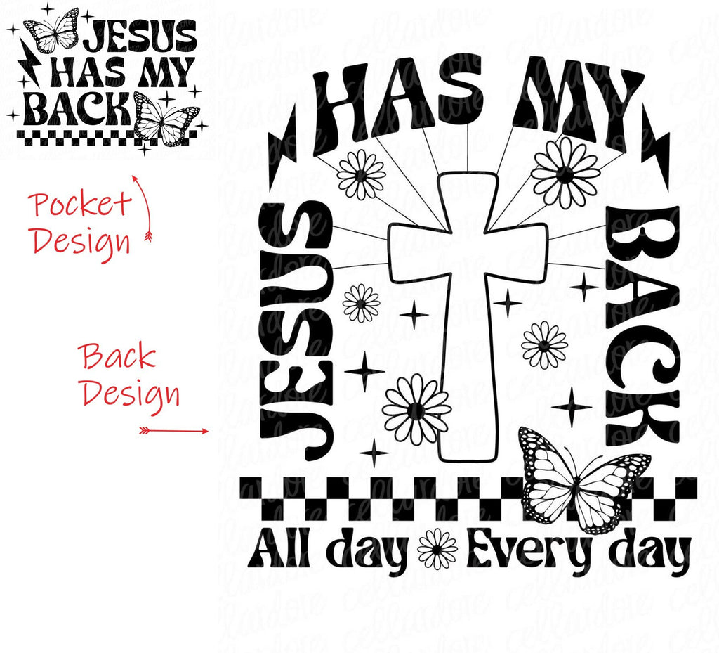Jesus Has My Back - Pocket and Back Design - DTF Ready to Press or Sublimation Transfer