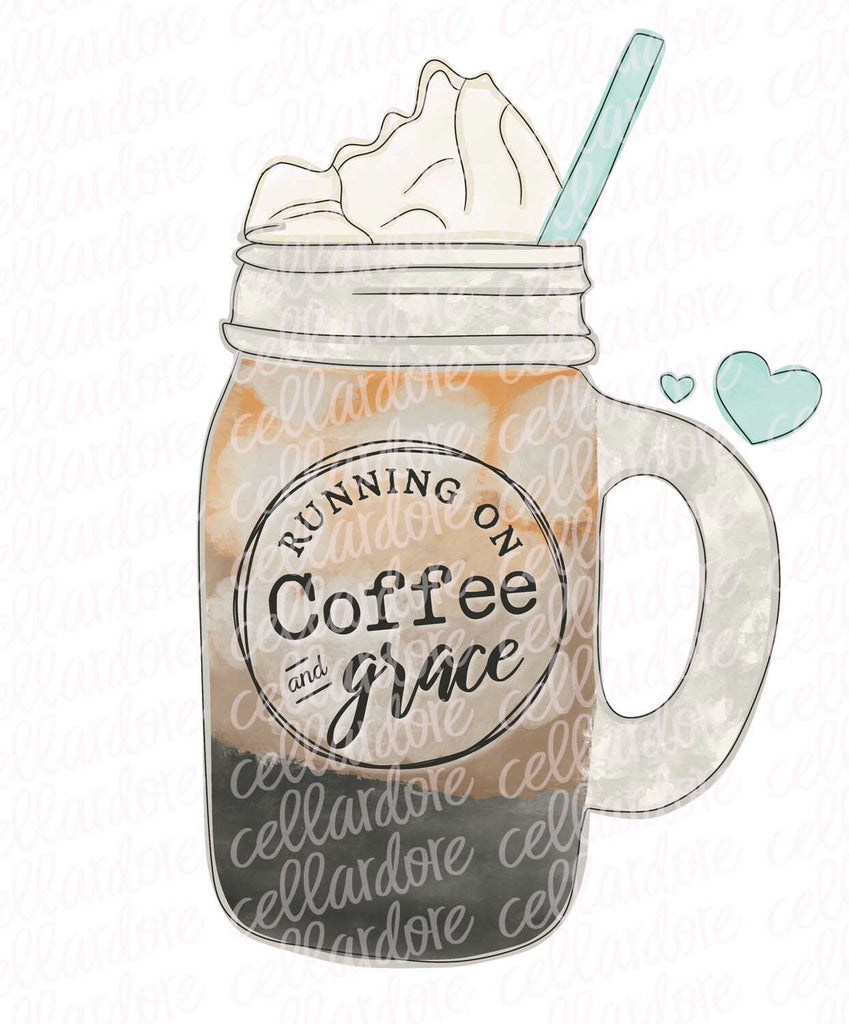 Running on Coffee and Grace - with optional pocket design - DTF Ready to Press or Sublimation Transfer