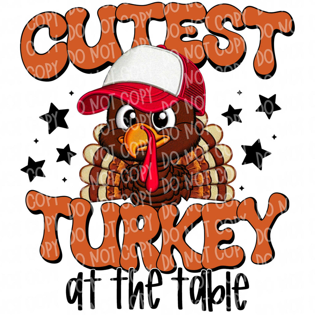 Cutest Turkey at the Table (Hat/Bow) | DTF Ready to Press or Sublimation Transfer