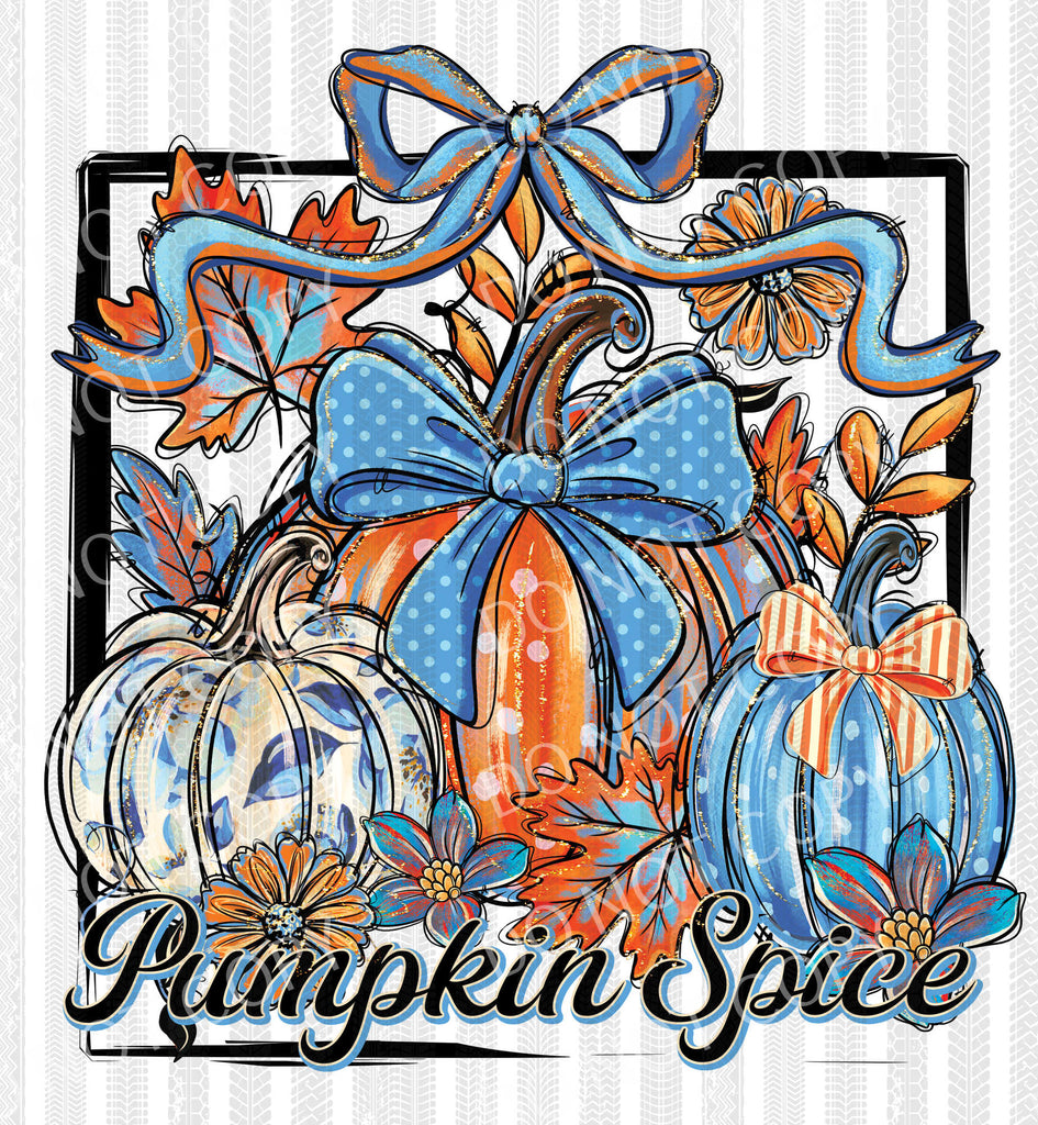 Pumpkin Spice - Blue and Orange Pumpkins with optional sleeve | DTF Ready to Press or Sublimation Transfer