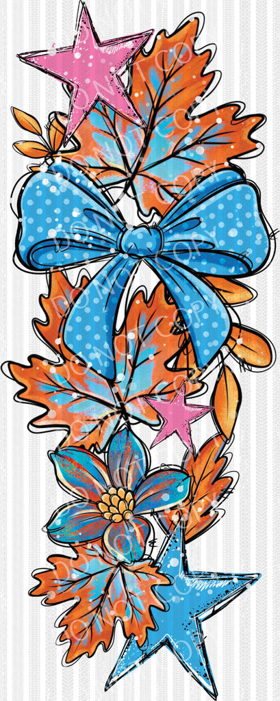 Pumpkin Selfie Blue Bow with optional sleeve design | DTF Ready to Press or Sublimation Transfer