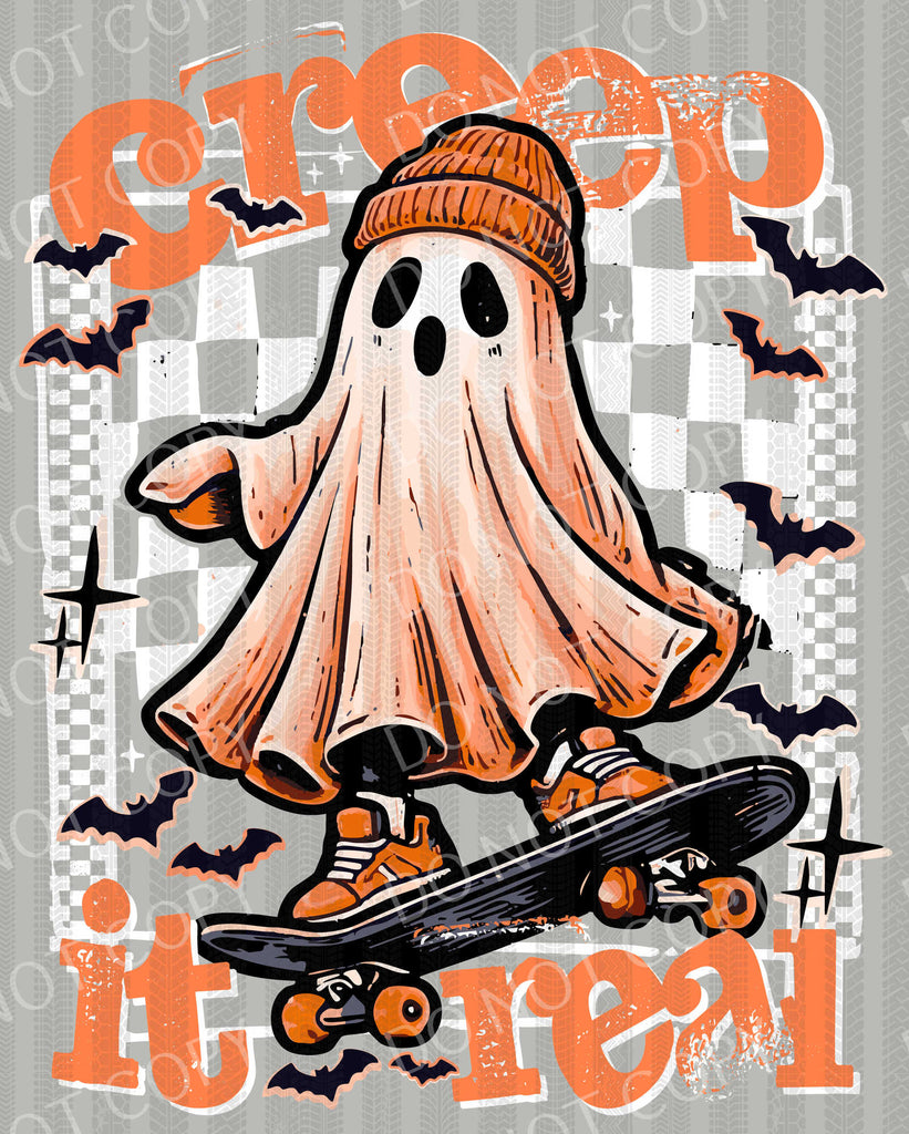 Creep it Real Ghost Skateboard Checkered Print | DTF Ready to Press or Sublimation Transfer