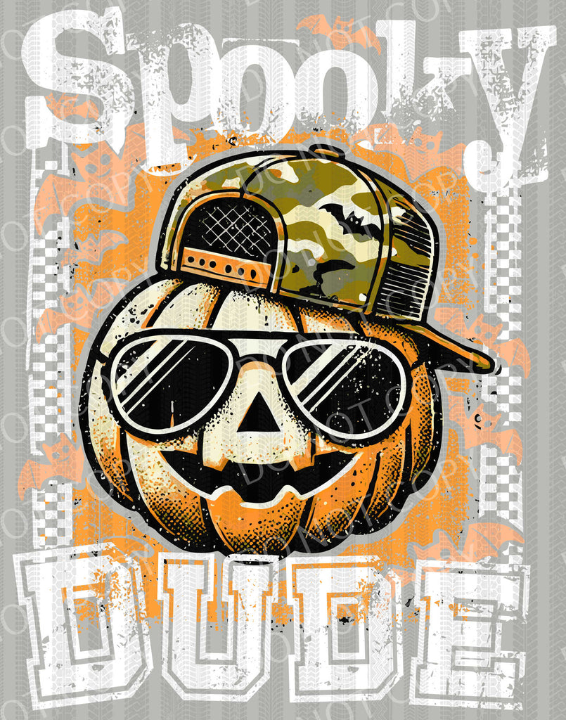 Spooky Dude Pumpkin Checkered Print Camo Hat Bats | DTF Ready to Press or Sublimation Transfer