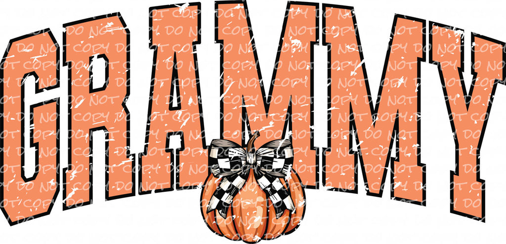 Fall Grammy Varsity Letters Pumpkin Coquette Bow Checkered Print | DTF Ready to Press or Sublimation Transfer