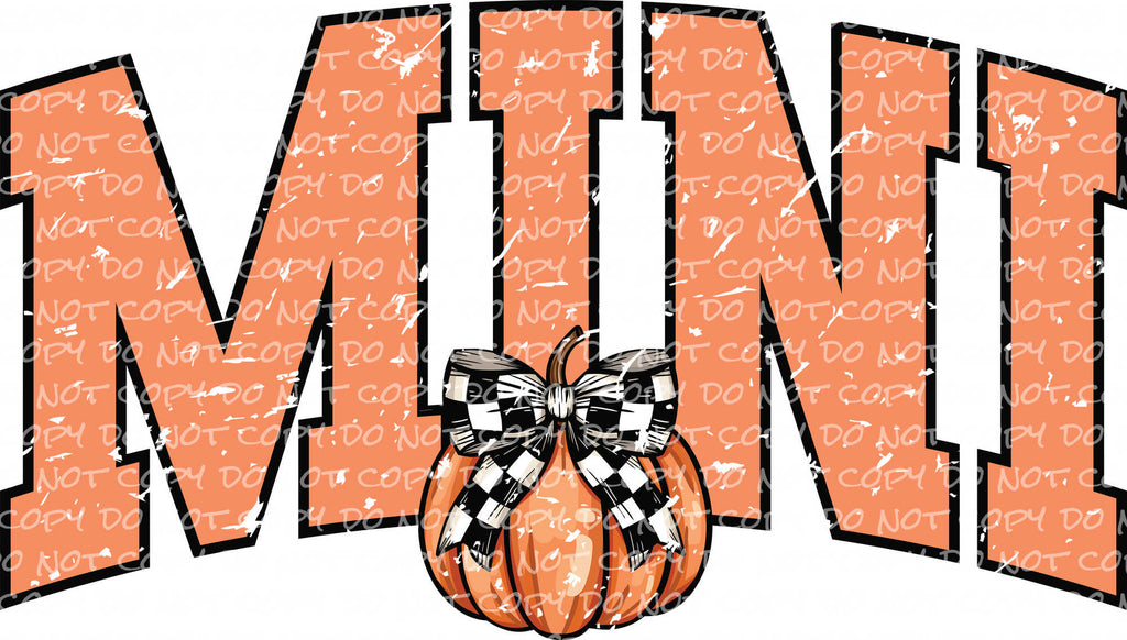 Fall Mini Varsity Letters Pumpkin Coquette Bow Checkered Print | DTF Ready to Press or Sublimation Transfer
