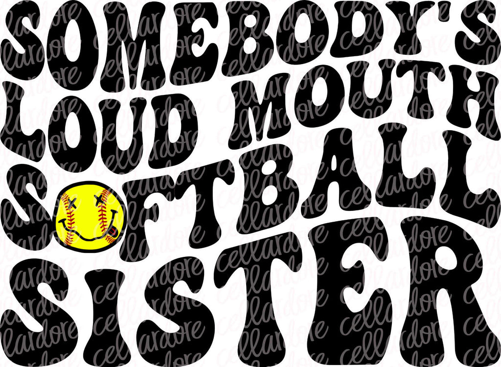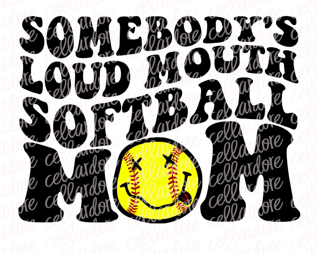 Somebody's Loud Mouth Softball Mom/Sister/Grammy - Pocket and Back Design Set - DTF Ready to Press or Sublimation Transfer