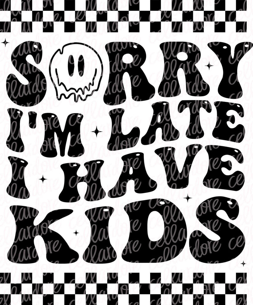 Sorry I'm Late, I have Kids - Mom Life - Pocket and Back Design - DTF Ready to Press or Sublimation Transfer