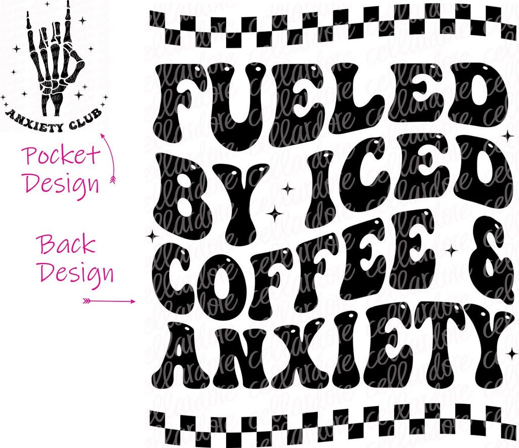 Fueled by Iced Coffee & Anxiety - Pocket and Back Design - DTF Ready to Press or Sublimation Transfer