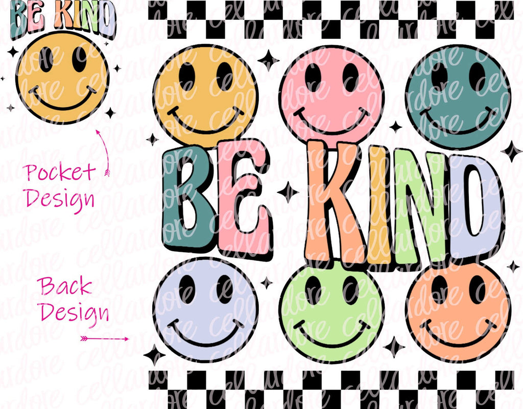 Be Kind Smiley Face - Pocket and Back Print Set - DTF Ready to Press or Sublimation Transfer