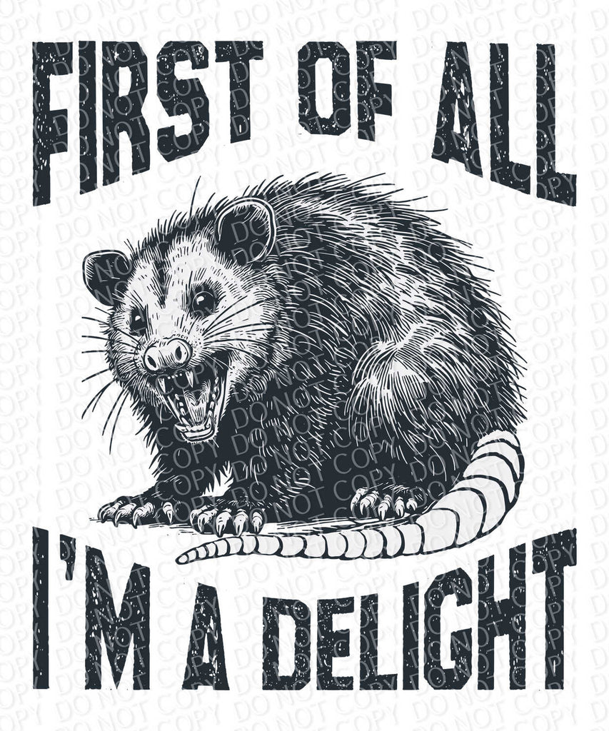 First of All I'm a Delight Possum | DTF Ready to Press or Sublimation Transfer