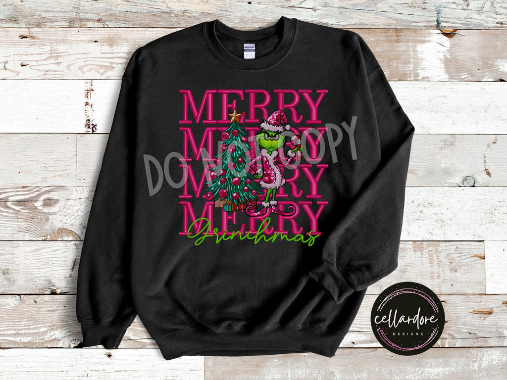 Merry G_R_I_N_C_H_MAS Sweatshirt - Completed Apparel Item - is backordered and will ship as soon as it is back in stock.