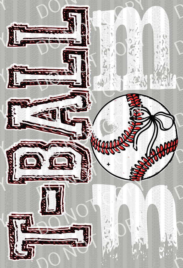 T-Ball Mom with Heart and Bow | DTF Ready to Press or Sublimation Transfer