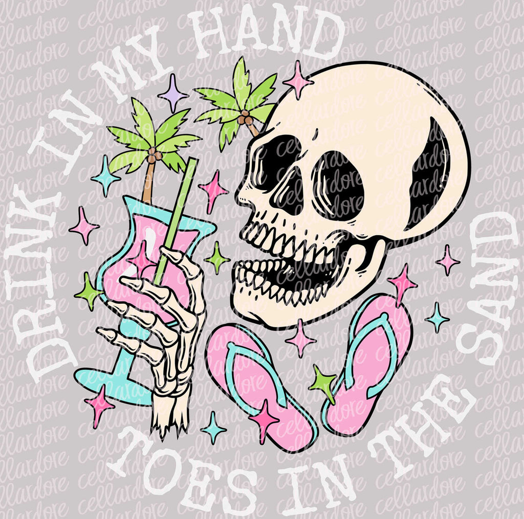 Drink in my Hand Toes in the Sand | DTF Ready to Press or Sublimation Transfer