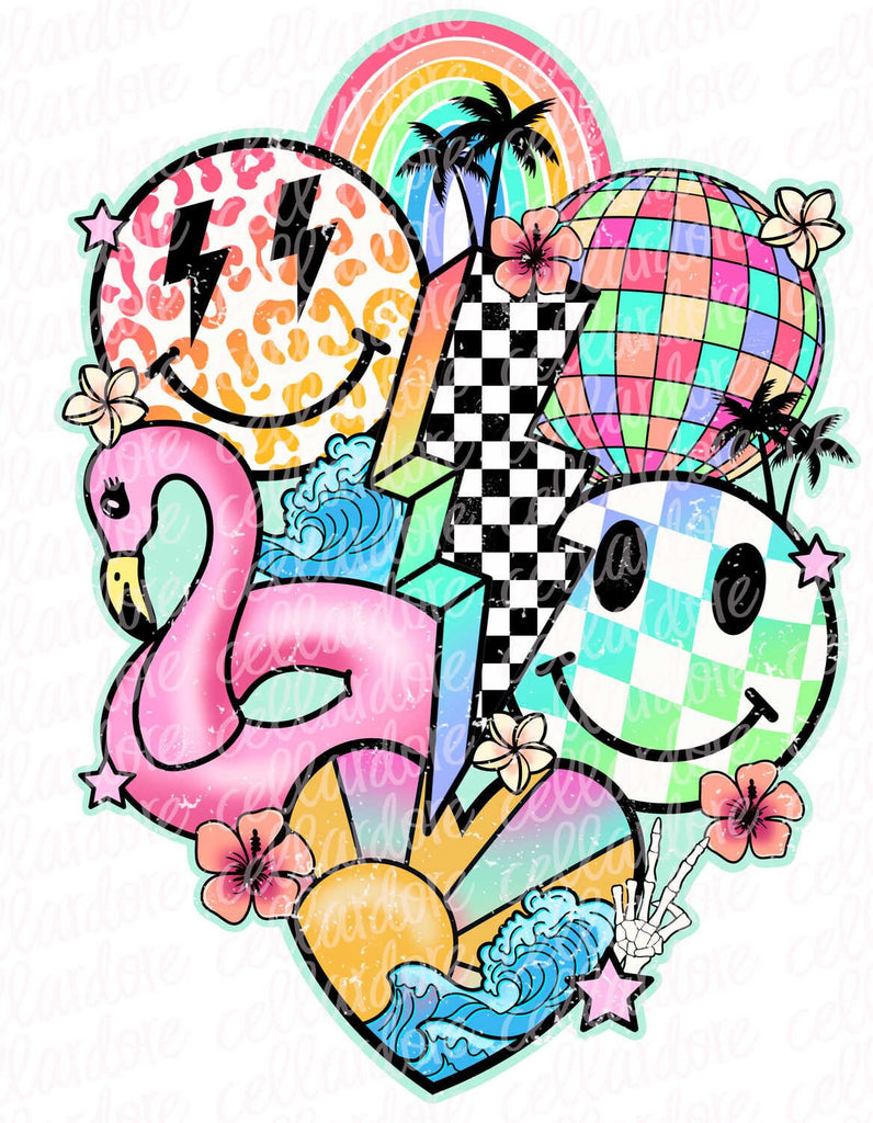 Retro Summer Collage - DTF Ready to Press or Sublimation Transfer