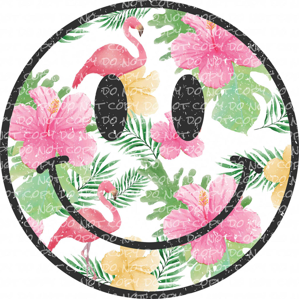 Summer Smiley Floral and Flamingo - DTF Ready to Press or Sublimation Transfer