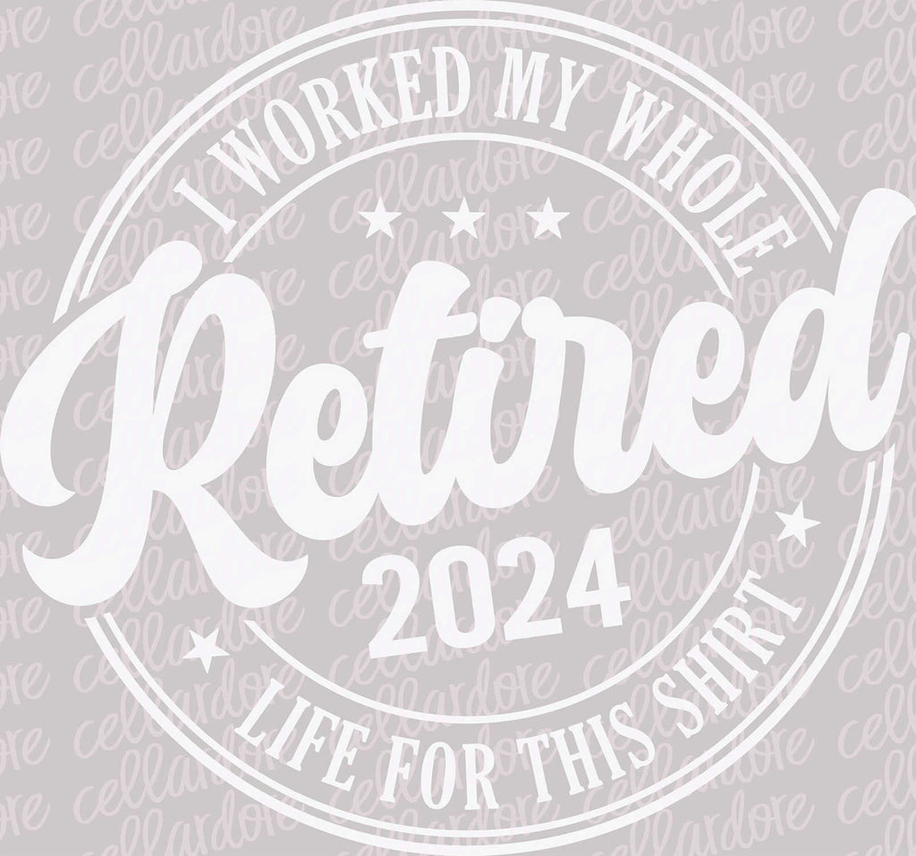 Retired 2024 - I Worked My Whole Life For This Shirt | DTF Ready to Press or Sublimation Transfer