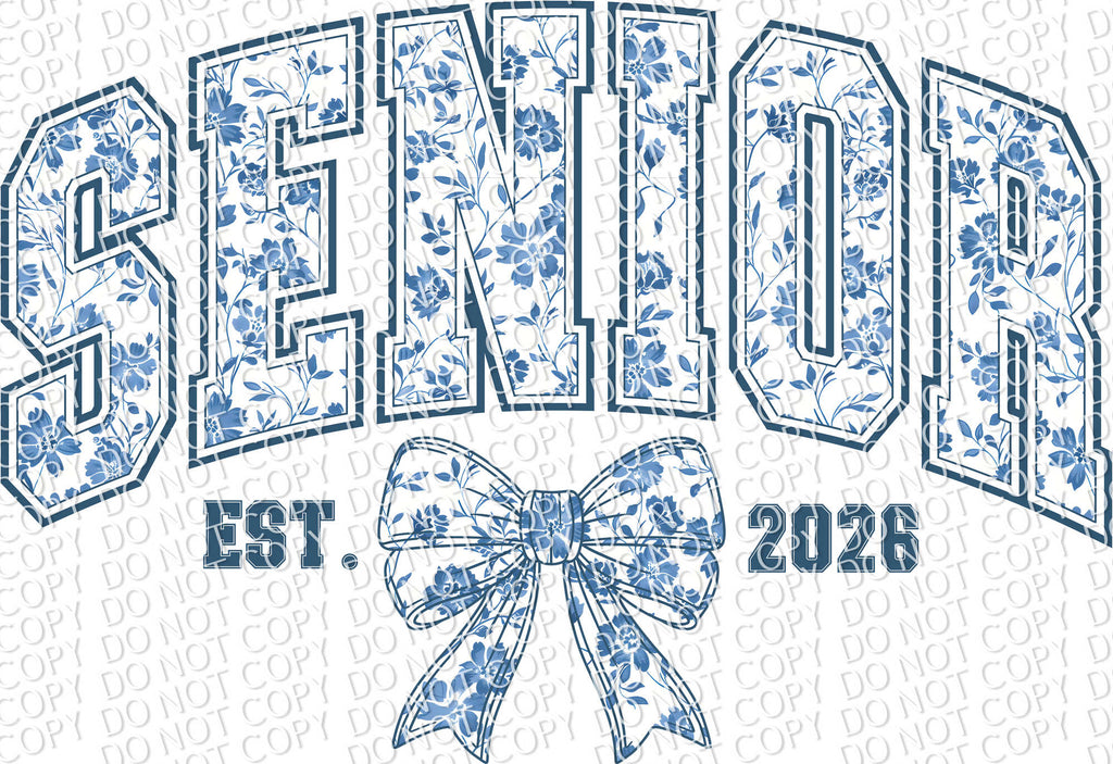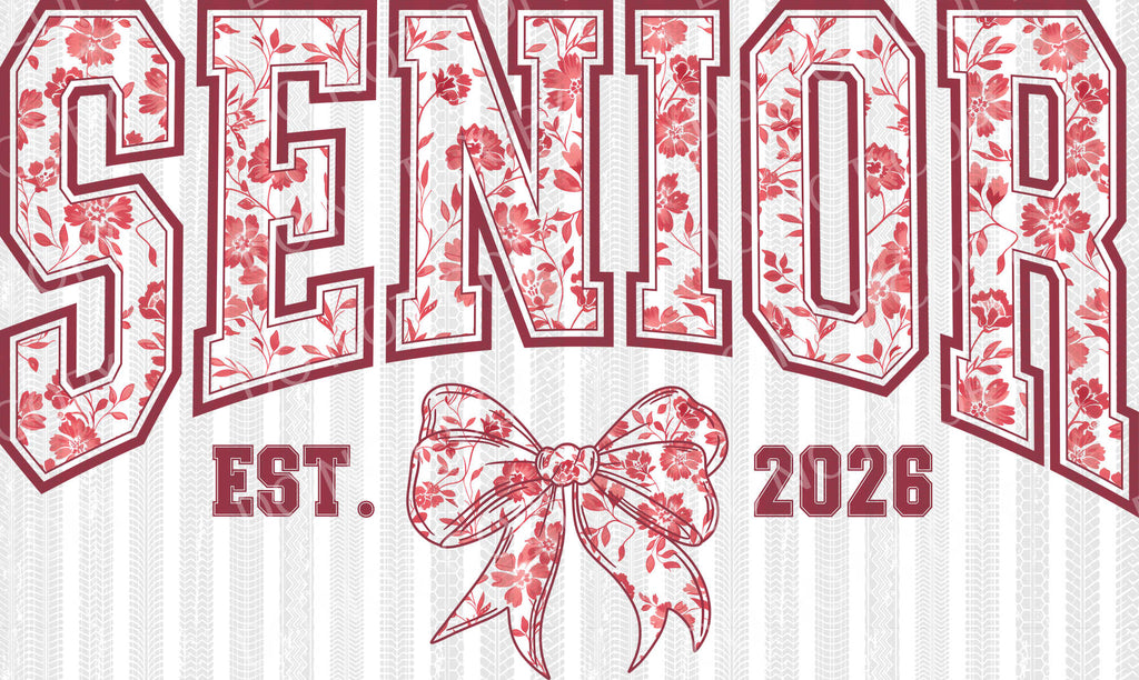 Senior 2026 Chinoiserie Coquette Bow | DTF Ready to Press or Sublimation Transfer