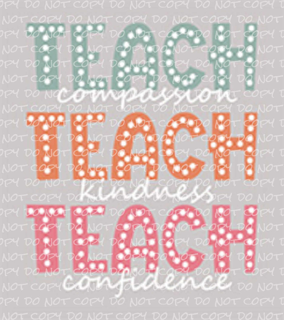 Teach Compassion Kindness Confidence | DTF Ready to Press or Sublimation Transfer