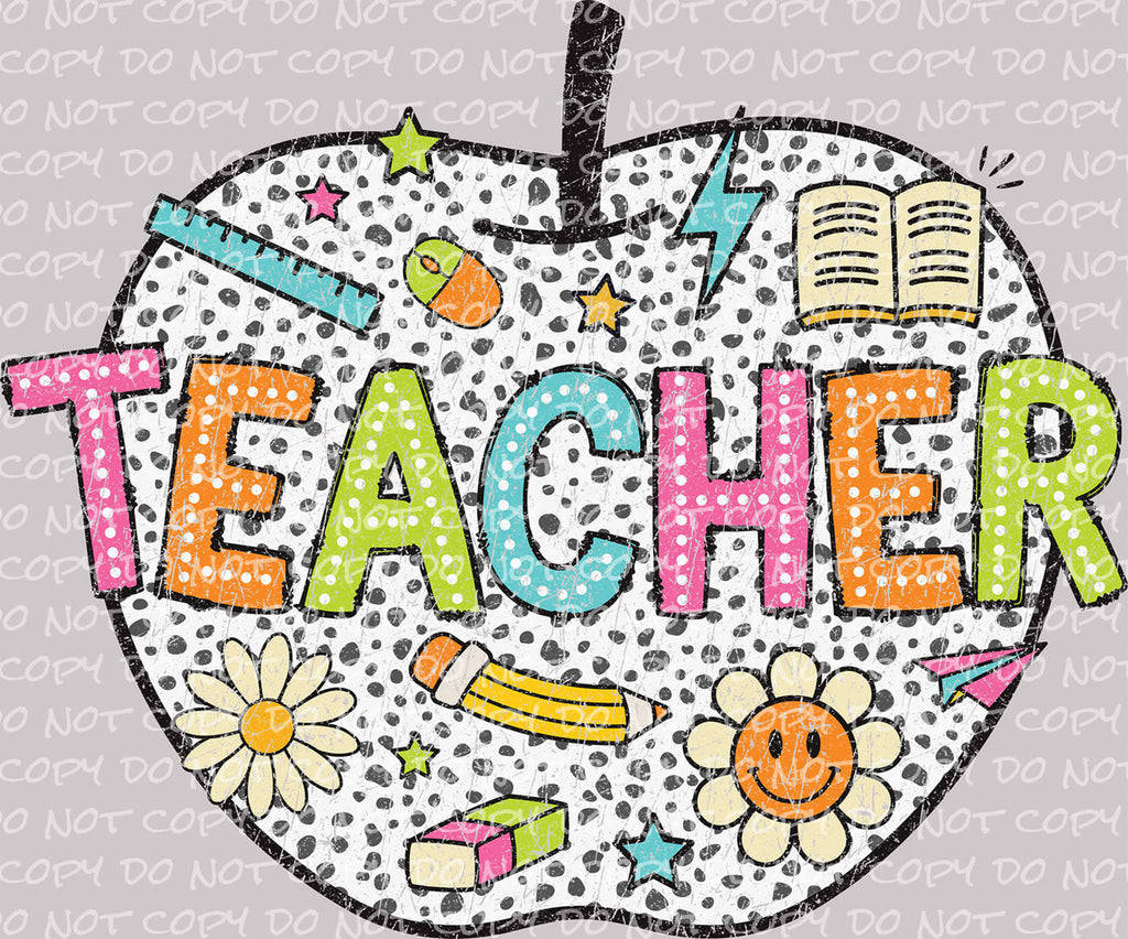 Teacher Apple - DTF Ready to Press or Sublimation Transfer