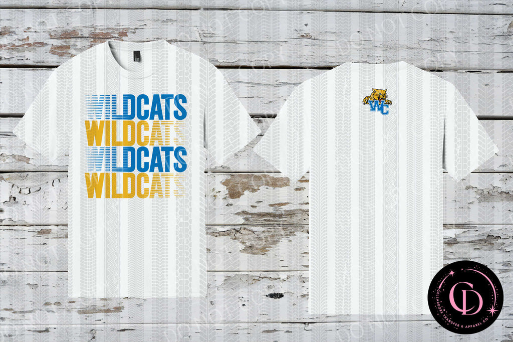 Stacked Wildcats w/WC Logo on back - Completed Apparel Item