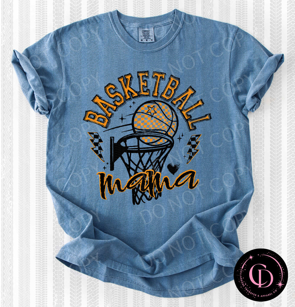 Show off your sideline style in this bold Basketball Mama tee! With a checkered ball, net, and lightning bolts, it’s perfect for proud hoops moms. Printed on soft Comfort Colors tees for a comfy, vintage look.