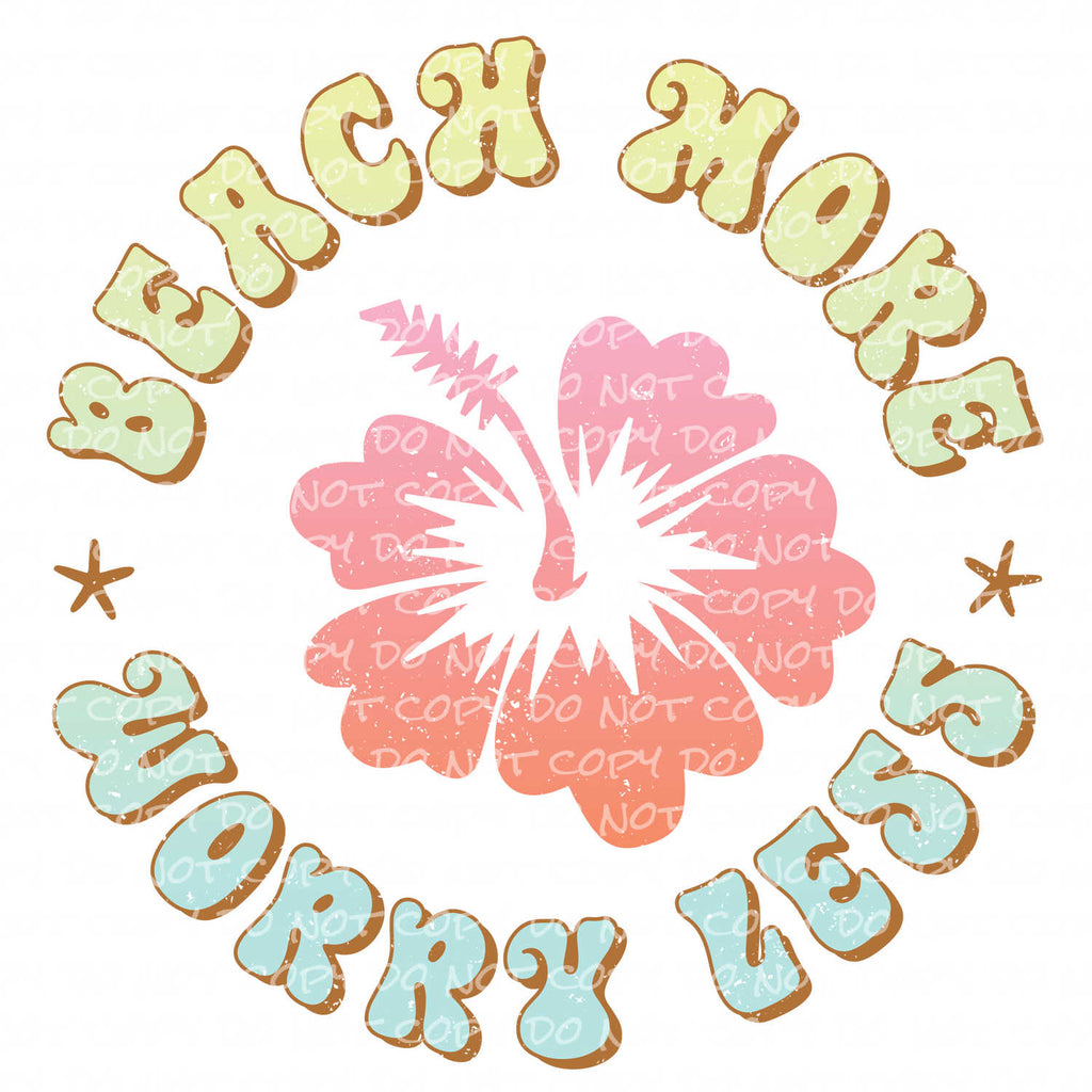 Beach More Worry Less - DTF Ready to Press or Sublimation Transfer
