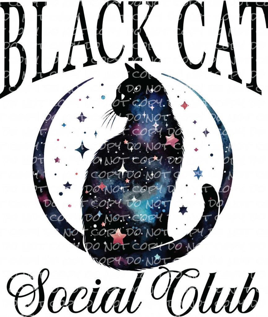 Black Cat Social Club (2 design options) | DTF Ready to Press or Sublimation Transfer