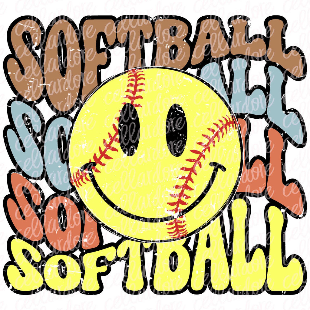 Softball Smiley Face - 2 Design/Color Options - DTF Ready to Press or Sublimation Transfer