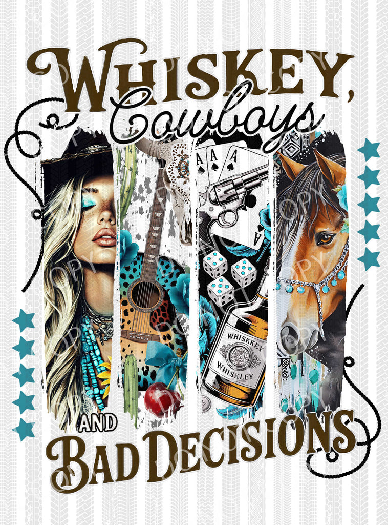 Whiskey Cowboys & Bad Decisions | DTF Ready to Press or Sublimation Transfer