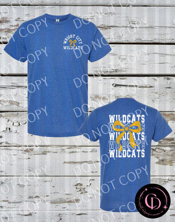 Wright City Wildcats With Gold Bow - Completed Apparel Item - is backordered and will ship as soon as it is back in stock.